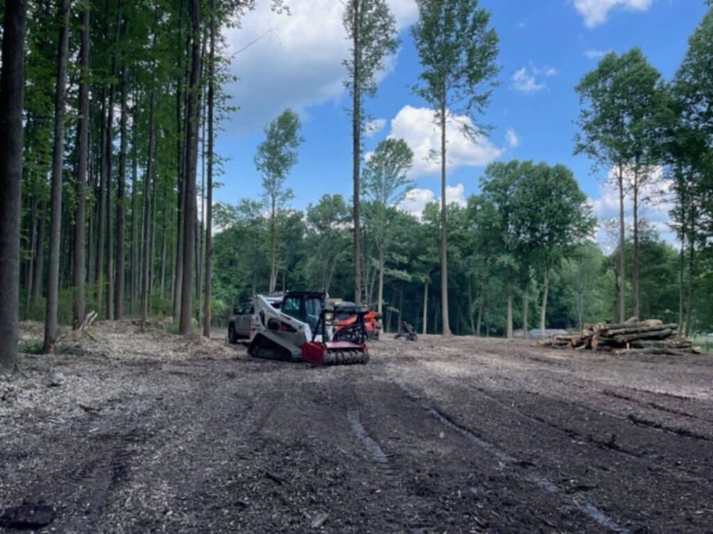 Most land clearing in Lancaster PA requires more than hand tools. We rely on skid steers equipped with forestry-style brush cutting attachments and other heavy machinery designed for dense vegetation.
